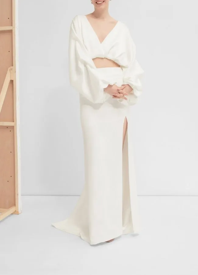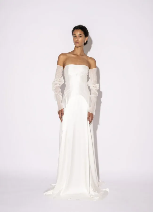 Fondée par Pippa, Bon Bridé est une maison anglaise qui inscrit ses créations dans une approche résolument contemporaine. La marque s’inspire de principes féministes et propose des robes pensées pour celles qui ne se reconnaissent pas dans une vision traditionnelle du mariage. Les lignes sont modernes, parfois avant-gardistes, et toujours affirmées, offrant une alternative forte et assumée.